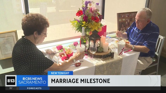 It turns out the secret to a long happy marriage may just be some waffle fries and a chicken salad. A Carmichael couple's weekly tradition at a local restaurant is being celebrated in a big way as they mark a major milestone in marriage.