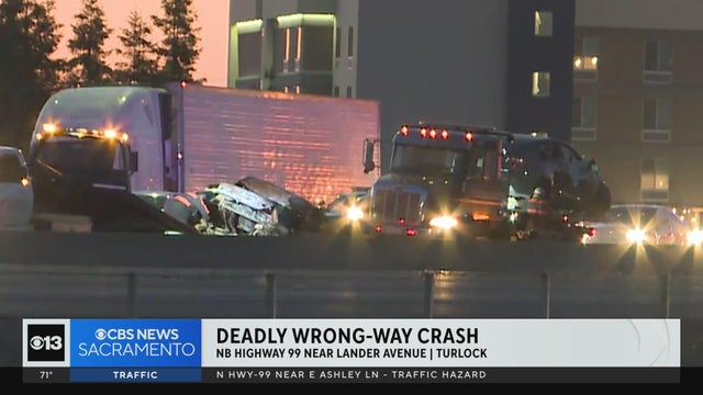 One person is dead and another man and a child are injured after a wrong-way crash involving two cars in Turlock, said California Highway Patrol.