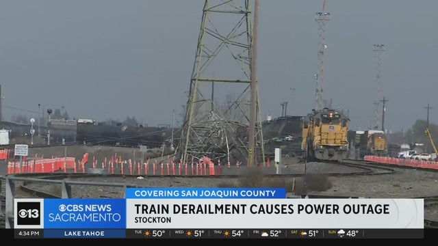 A train derailment caused a large power outage in Stockton on Monday morning, authorities say.