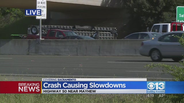 Caltrans said there was an overturned trailer in the eastbound lanes near Mayhew Road.