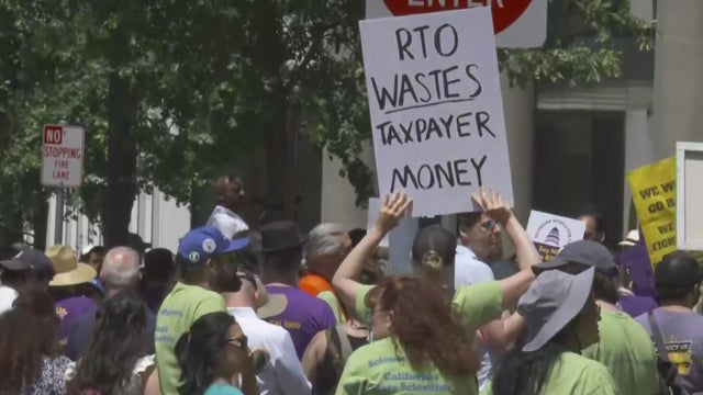 Hundreds of state workers rallied near the California State Capitol on Thursday, protesting Gov. Gavin Newsom's order for them to return to the office and his proposed cuts to their paychecks.