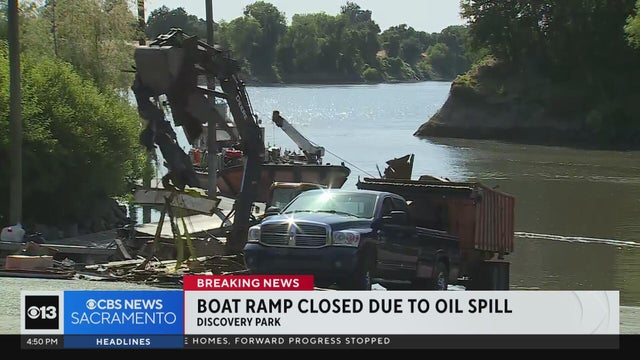 California Fish and Wildlife officials were removing a boat when it fell apart and spilled oil into the river.