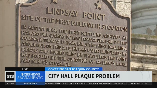 If you've ever stopped by Stockton City Hall, you may have noticed a plaque on your way up the steps. This, as it claims, is Lindsay Point -- the site of the first building in Stockton.