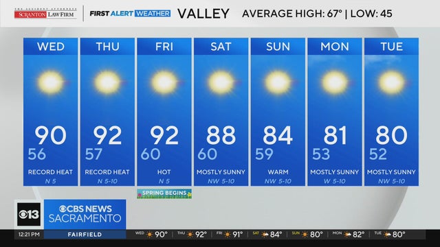 San Jose, Livermore, Napa, Concord, and many other inland areas will be within reach of the 90° mark, which would either tie or break all-time record warm temperatures for March. The reason? A strong area of high pressure is building overhead.