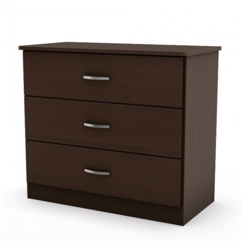 The Libra style 3-drawer chests are manufactured by South Shore Furniture and were sold from October 2009-July 2018 for about $60. The 3-drawer chests came in nine colors and each drawer has a metal handle. The chests are 27-and-a-half inches high, 31-and-a-quarter inches wide, and 15-and-a-half inches deep. Each chest weighs about 56 pounds.