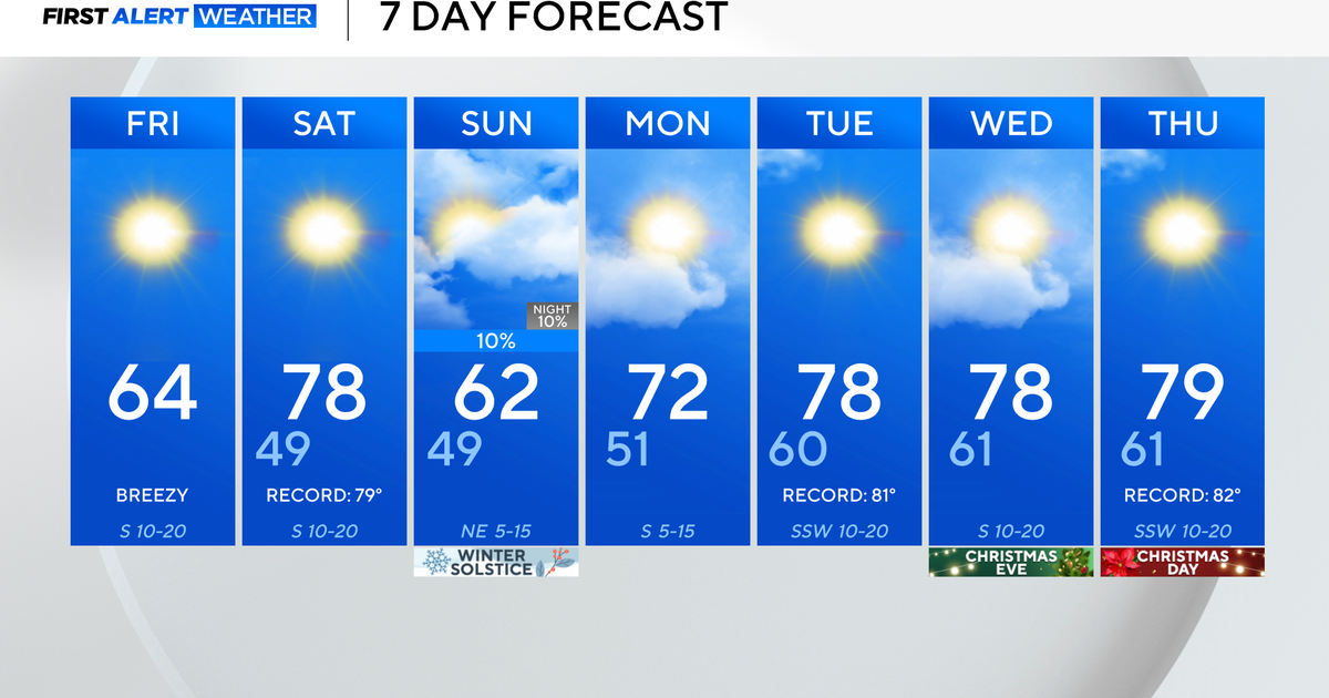 A dominant ridge of high pressure overhead will keep things from cooling off much overnight. Low temperatures in the upper 60s mean those AC units will be working overtime.