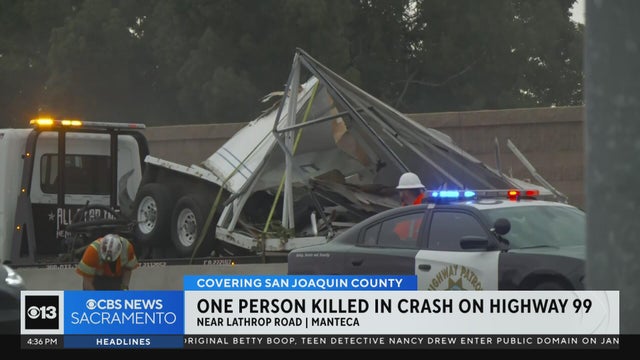 A person died in the hospital after a crash shut down northbound Highway 99 in Manteca on Friday, authorities said.
