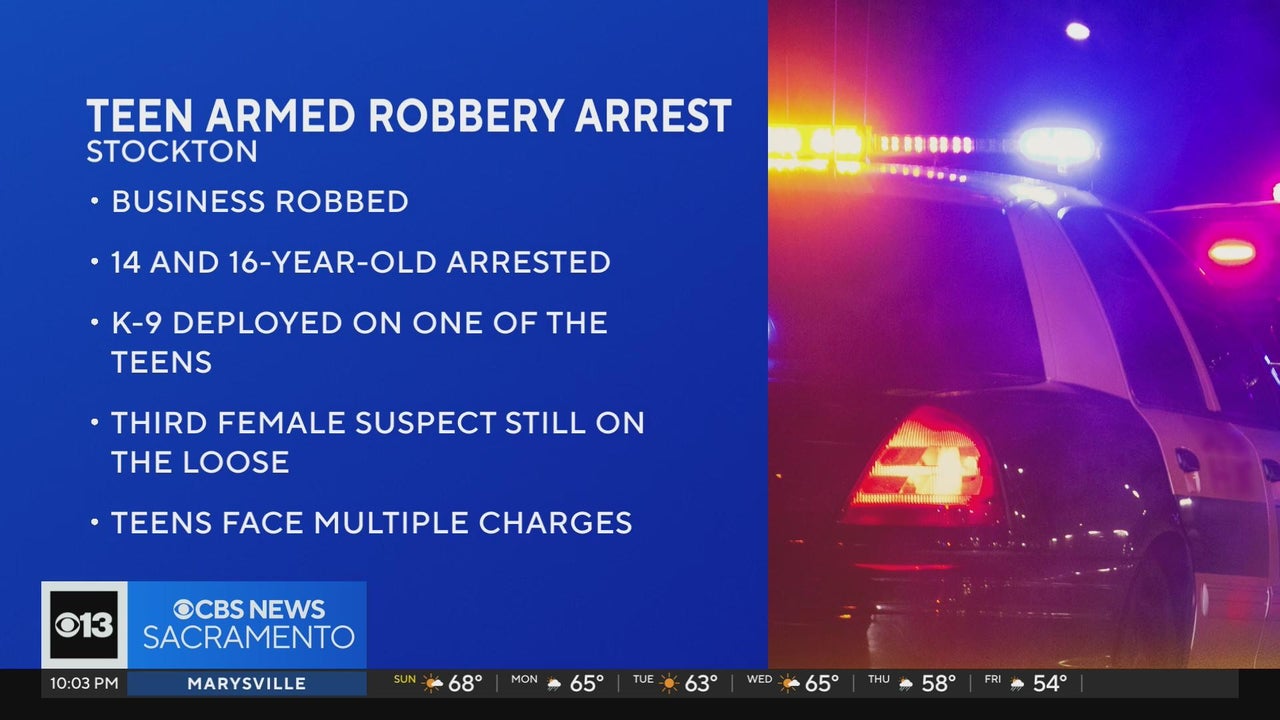 2 teens arrested, third suspect on the loose after armed robbery in Stockton