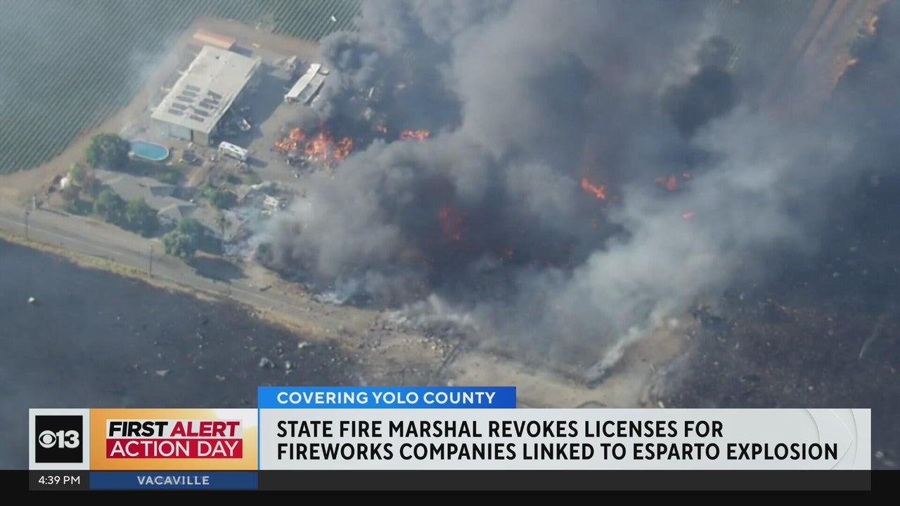 California's state fire marshal has officially revoked a number of pyrotechnic licenses as the investigation into the deadly fireworks facility explosion in Esparto continues.