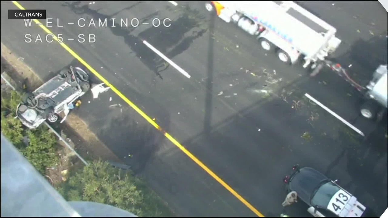 Car crashes onto I-5 from Sacramento street
