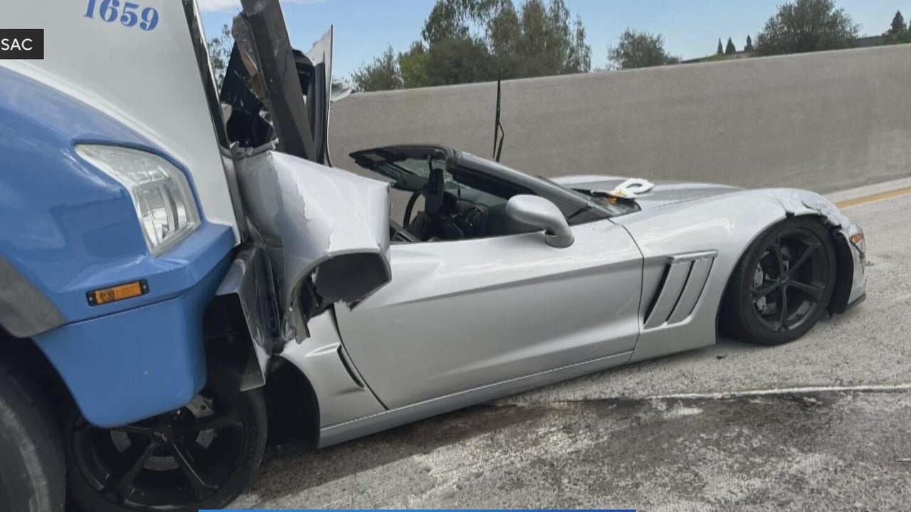 One person has died after a crash involving a Corvette and a diesel truck along Highway 50 in Sacramento, authorities say.