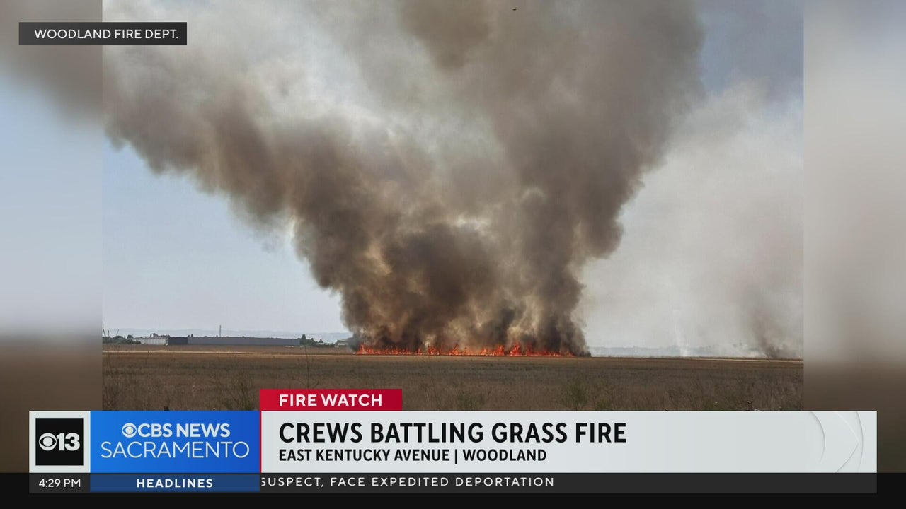 Firefighters are battling a grass fire near Woodland in Yolo County on Tuesday.