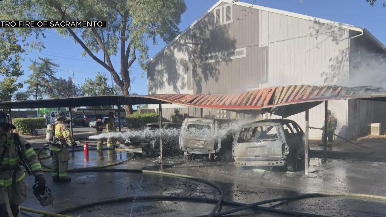 An investigation is underway after four cars were destroyed by a fire in North Highlands.