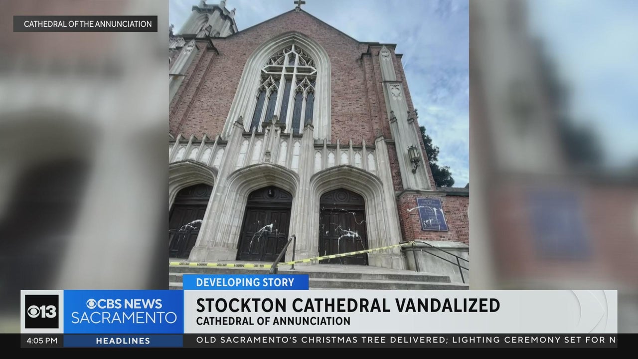 Stockton cathedral vandalized with white paint