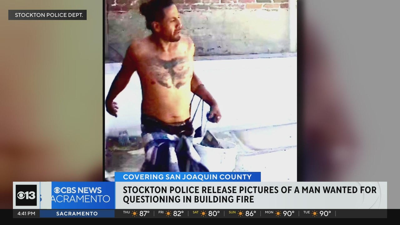 Stockton police release photos of man wanted for questioning in building fire
