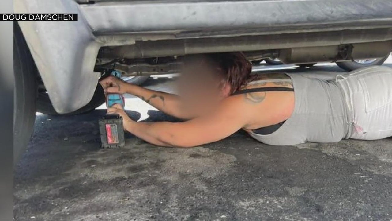 A would-be thief was confronted while under a vehicle allegedly trying to steal the vehicle's catalytic converter. Police say the suspect has not yet been caught.