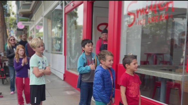 Lauren Toms reports on the reopening of Smitten Ice Cream in San Francico's Mission District after hateful graffiti was written on the windows, and how the owner plans to move forward. (11/21/2023)