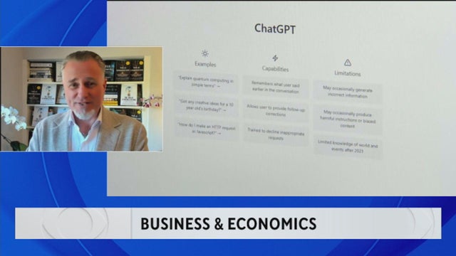 As the use of A.I. continues to grow, does the technology stand to benefit small businesses, or larger ones? CBS News Bay Area anchor Ryan Yamamoto asks Olaf Groth, PhD, global strategist and professor at UC Berkeley's Haas School of Business about the impact on businesses, and also the impact of new House speaker Mike Johnson and the looming government shutdown on the U.S. economy