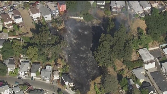The Oakland Fire Department said over 50 firefighters responded to a grass fire in a residential neighborhood.