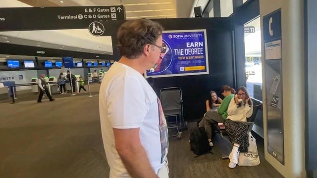 José Martínez talked to people at SFO who were rerouted after their flight to Maui was canceled. (8-11-23)