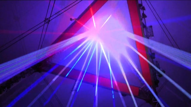 At Sutro Tower Tuesday night, powerful lasers created a spectacle that could be seen for miles and the fog was part of the plan. Lauren Toms reports. (7-4-23)