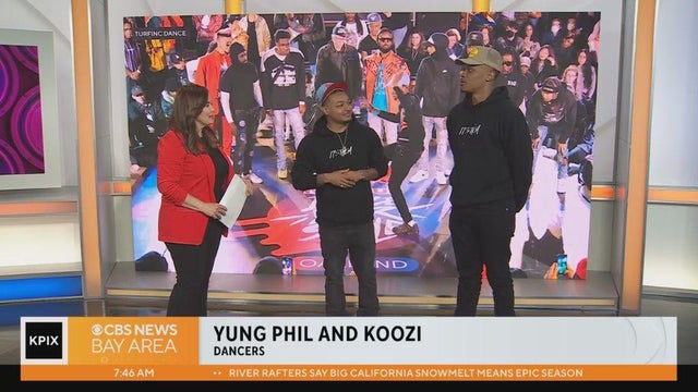 Bay Area Hip-Hop dancers Yung Phil and Koozi showed some moves and discussed competing in the Red Bull Dance Your Style competition at Frank Ogawa Plaza in Oakland. (05/05/2023)