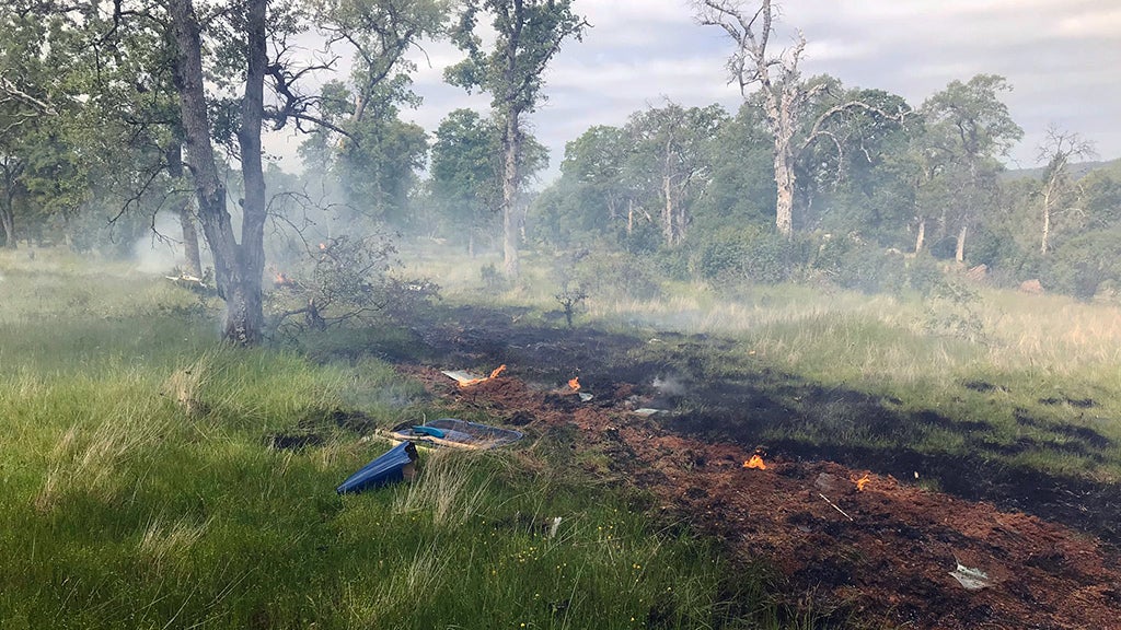 The single-engine aircraft was engulfed in fire after crashing shortly before 11 a.m., Placer County Sheriff's Lt. Andrew Scott said.