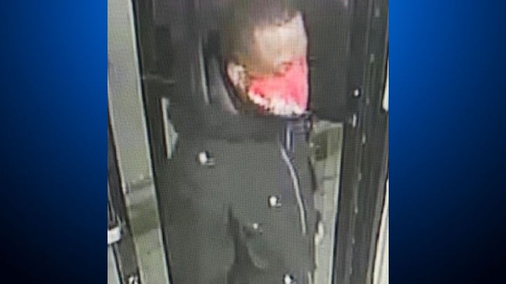 The suspect was described as a black male adult approximately 30 years old, wearing a dark hooded jacket and a gold/red 49ers facemask.