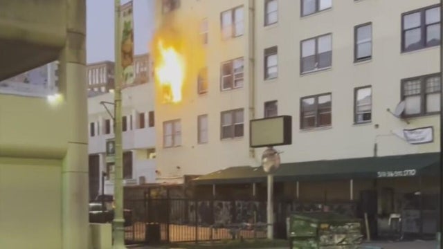 A three-alarm fire broke out at a multi-story apartment building in downtown Oakland Monday morning, officials said. Veronica Macias reports.