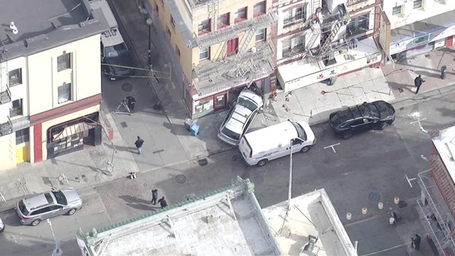 An SUV collided with two pedestrians and plowed into a building in San Francisco's Chinatown on Friday morning.