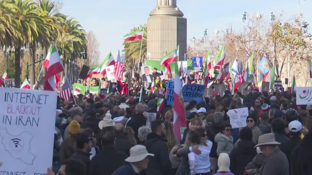 Cries for regime change in Iran echoed through San Francisco on Sunday afternoon as more than a thousand Iranian-Americans and supporters gathered in front of the Ferry Building to show solidarity with protesters overseas.