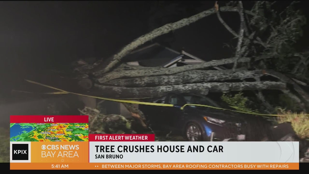 Atmospheric River: Tree crashes into house and car in San Bruno