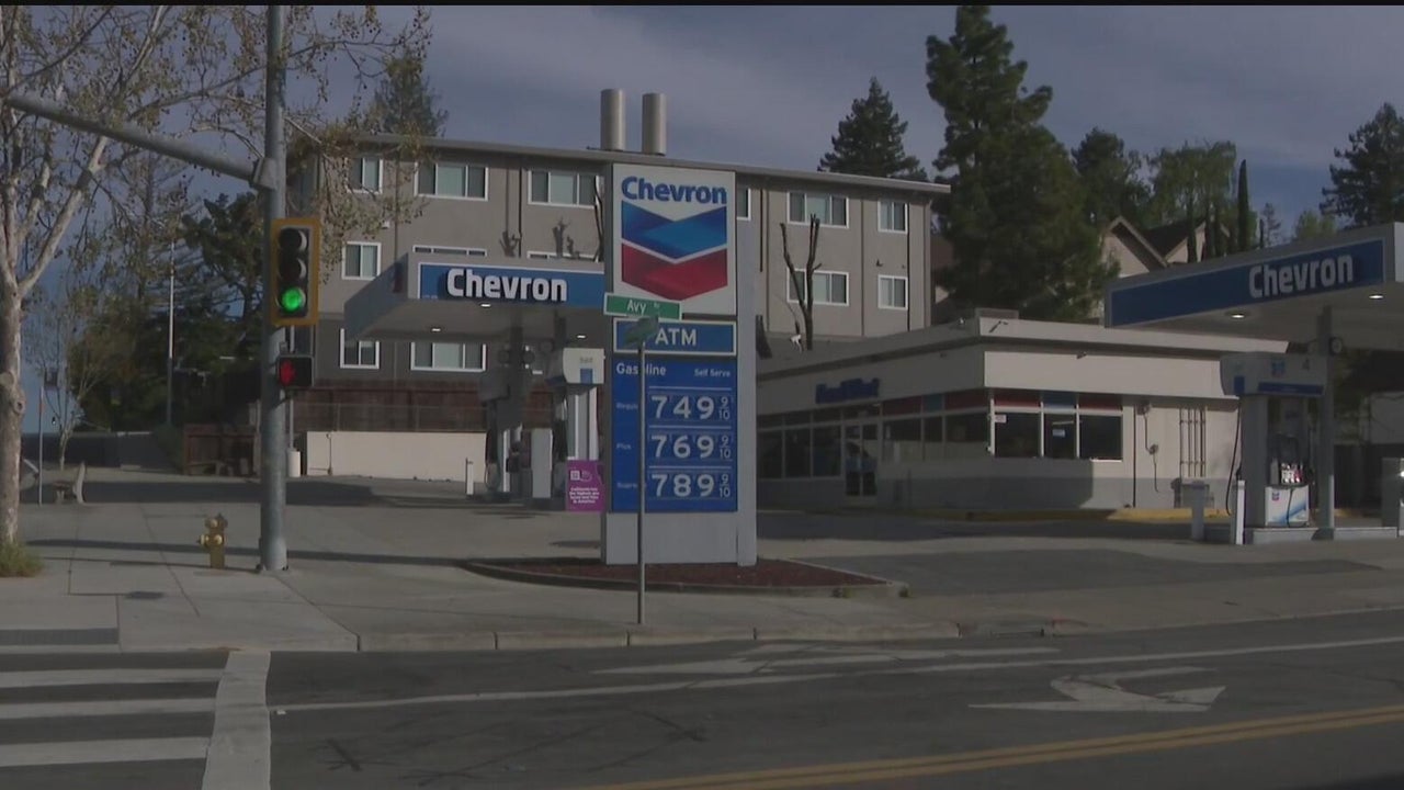 A Chevron gas station in Menlo Park was empty on Sunday evening, with prices ranging from $7.49 to $7.89 per gallon.