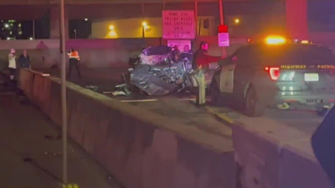 Cars flies off highway offramp into building in San Francisco