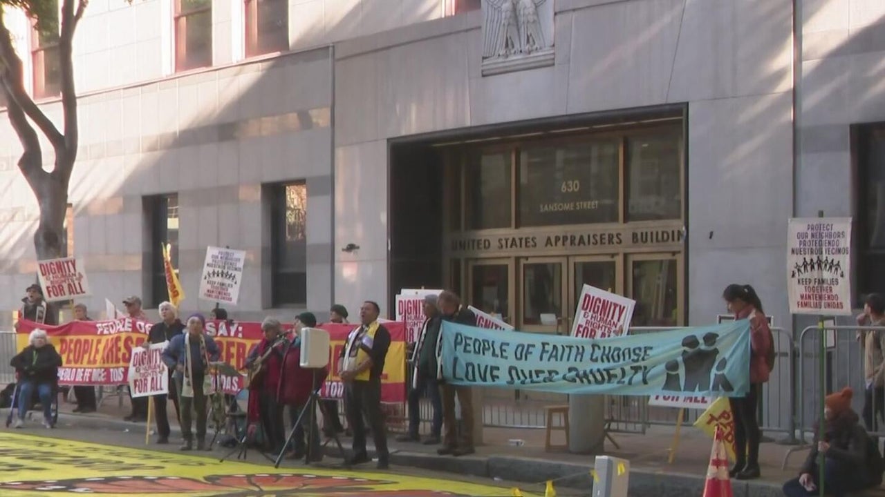 Faith leaders block federal building in San Francisco in protest against immigration enforcement