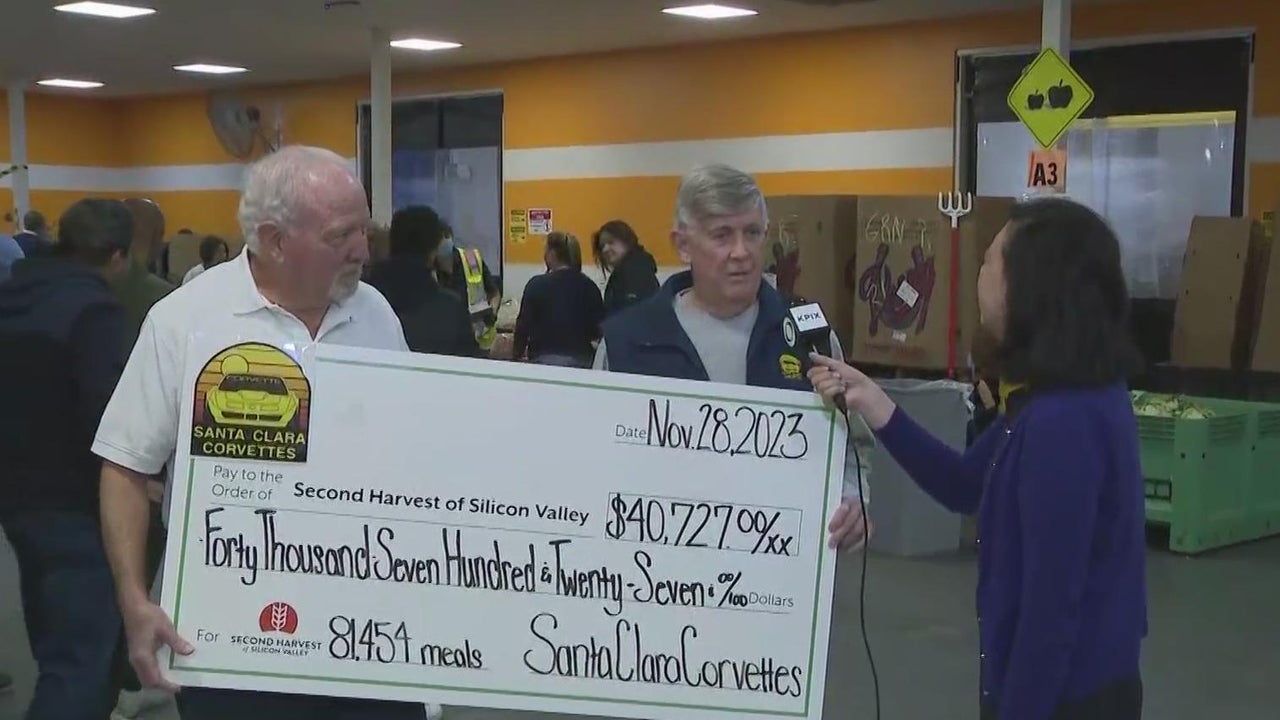 The Santa Clara Corvettes car club presents a check for over $40,000 to Second Harvest of Silicon Valley (12-4-2023)