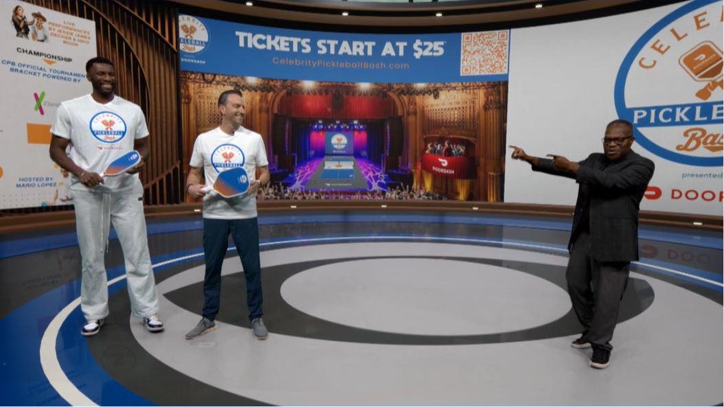 Vern Glenn interviews former Warriors center Festus Ezeli and Pivot Agency founder Ben Shapiro to preview the upcoming Celebrity Pickleball Bash at the Warfield Theater during the NBA's All-Star weekend. (2-2-25)