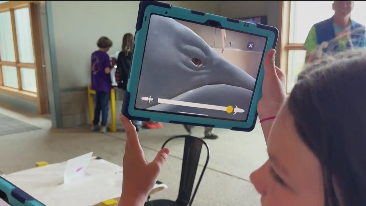 iPads allow students to interact with virtual blue whale at Santa Cruz research center