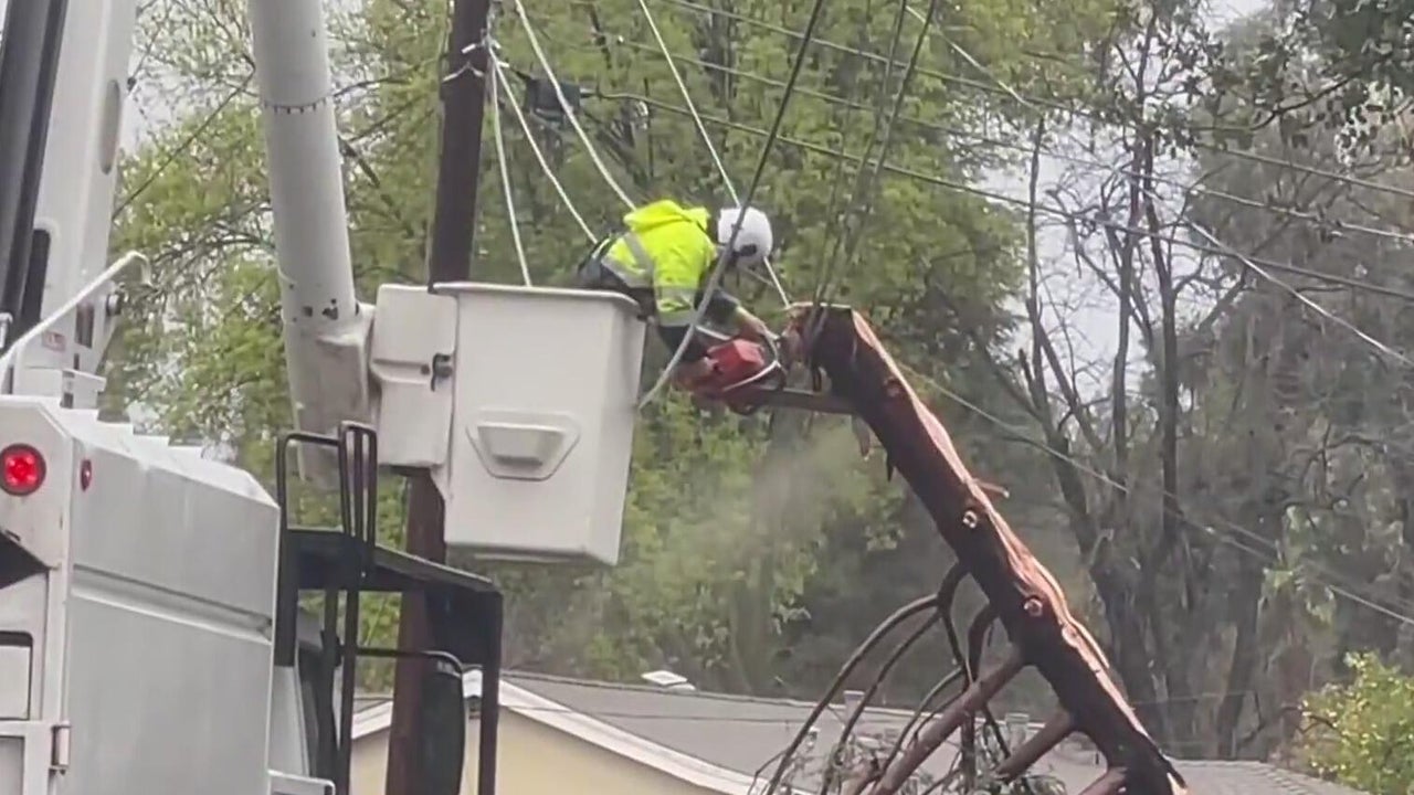 Lightning strikes tree in East Bay causing it to split, fall onto power line