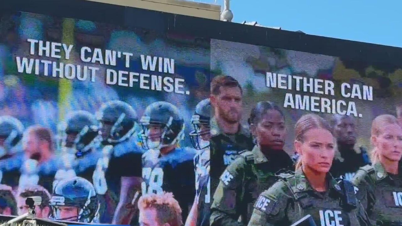 An pro-ICE billboard at San Francisco's Fisherman's Wharf with a football theme for Super Bowl week was removed after a community backlash.