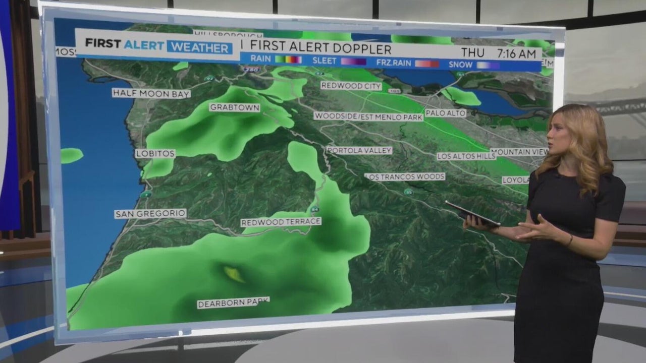 Meteorologist Jessica Burch shows where rain showers will continue to fall Thursday ahead of a few days of clearing, followed by a new round of rain.