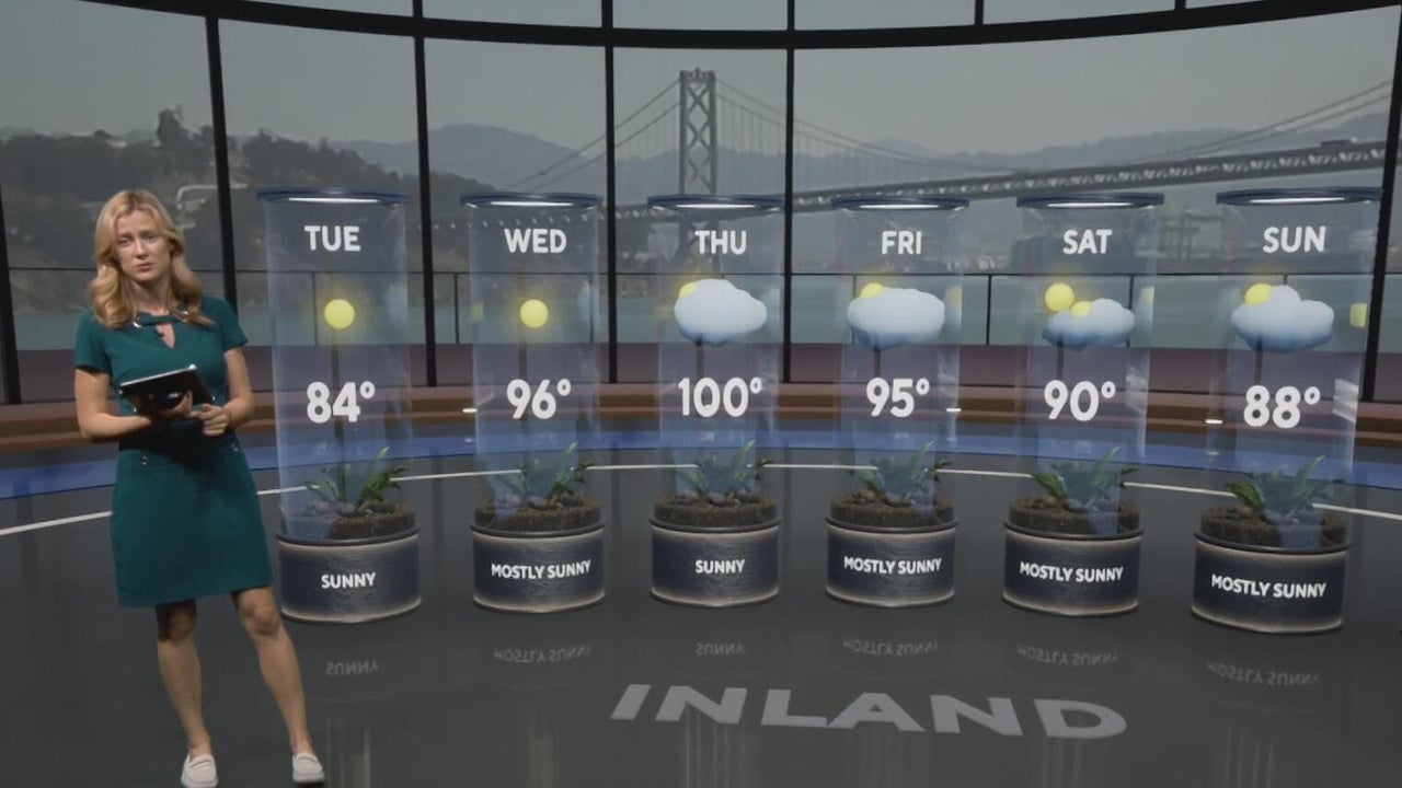 Meteorologist Jessica Burch says inland areas of the Bay Area could hit triple digits by Thursday.