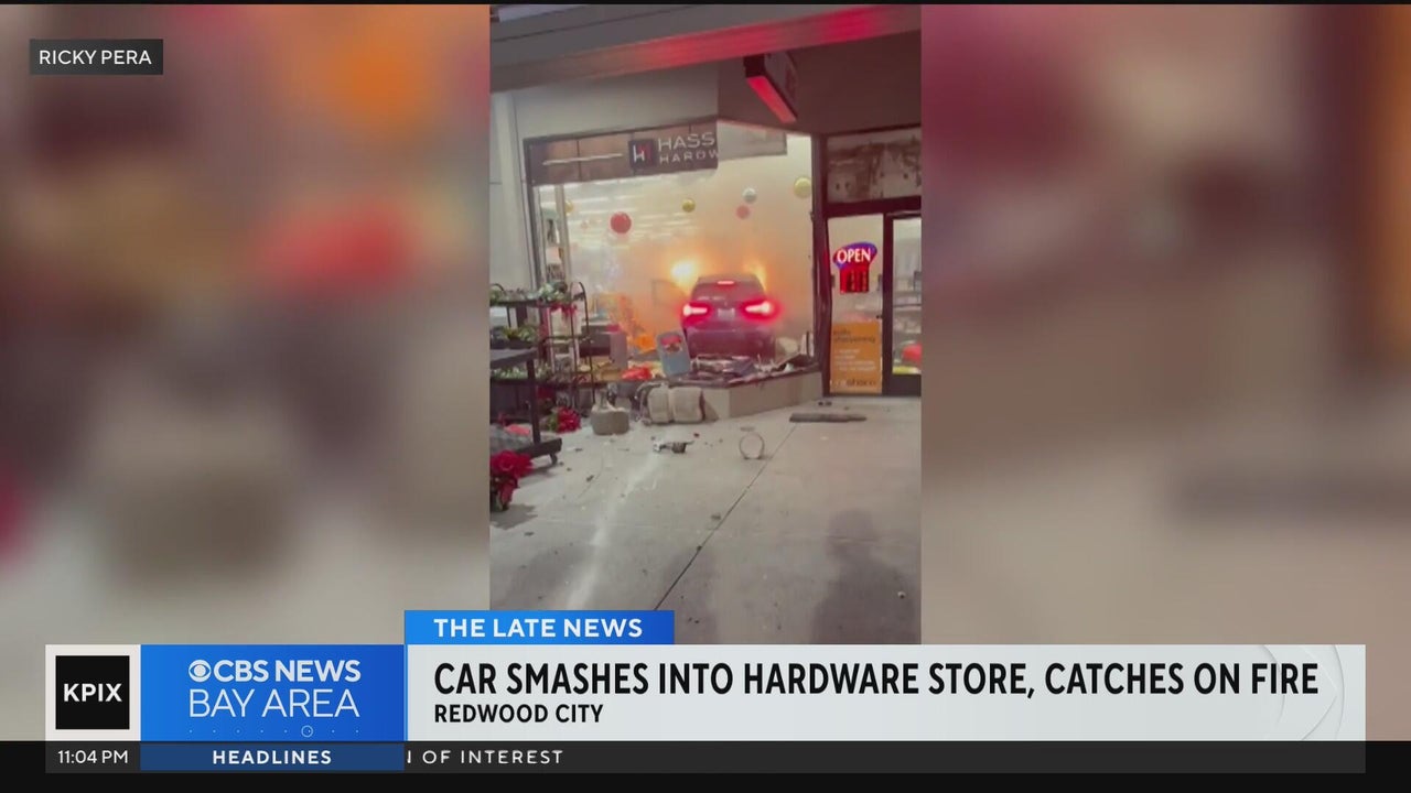 Vehicle crashes into Redwood City hardware store, then catches on fire