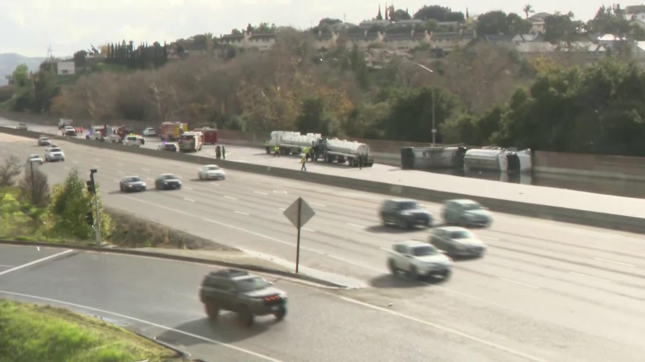 Watch: Scene of overturned fuel tanker in San Jose on Highway 101