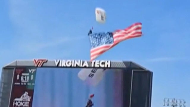 A skydiver crashed into the scoreboard before Virginia Tech's spring football game.