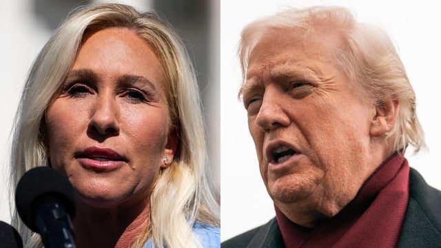 President Trump told reporters that he doesn't think "anybody cares about" Rep. Marjorie Taylor Greene after he withdrew support for the Georgia Republican, and as both remain at odds over the Epstein files, the government shutdown and the future of health care costs. CBS News' Taurean Small has more.