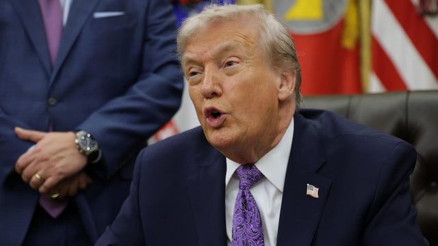 President Trump is heading back to the U.S. after his whirlwind trip to the Middle East, where he celebrated the first phase of a peace plan between Israel and Hamas. CBS News' Debora Patta and Nancy Cordes report.
