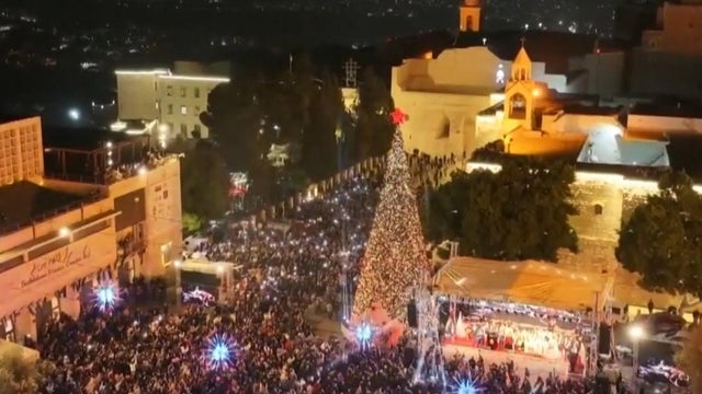 Thousands traveled from nearby towns and villages to attend Bethlehem's annual tree lighting ceremony in Manger Square -- the first such celebration since 2023. As Imtiaz Tyab reports, there's hope for a brighter future and lasting peace.