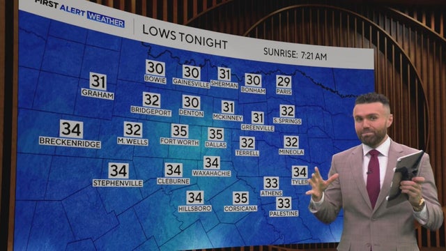 Looking ahead to Wednesday night, temperatures turn cold, but this looks to be the last cold night for at least the next 7 to 10 days. Lows fall below freezing for some, including portions of DFW.