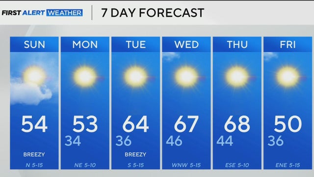 A cold front is moving across the area Sunday morning, bringing a cool and gusty northerly wind.